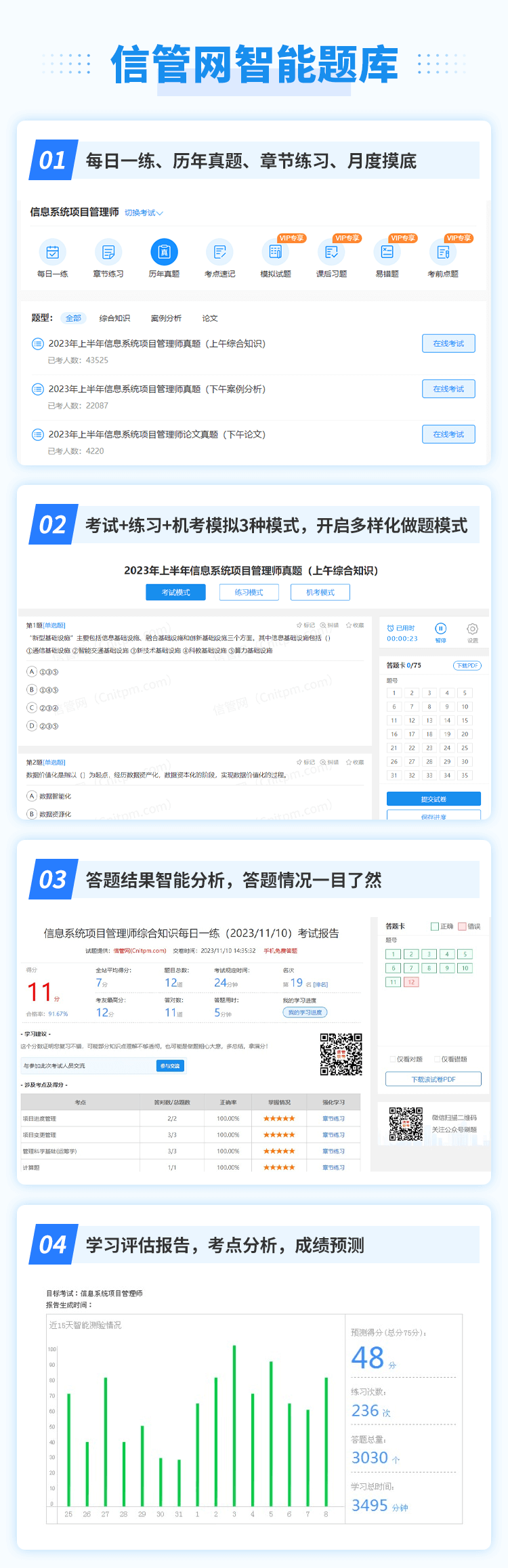 信管網(wǎng)為信息化考試與服務(wù)專業(yè)平臺,目前開設(shè)有信息系統(tǒng)項目管理師、系統(tǒng)規(guī)劃與管理師、系統(tǒng)集成項目管理工程師、信息安全工程師考試與學(xué)習(xí)服務(wù)。提供了包括考試報名、考試課程、成績查詢、真題發(fā)布、資料下載、案例分析、論文、考試教程、在線題庫、每日一練、章節(jié)練習(xí)、信管人才、論壇交流等服務(wù)。我們將為廣大信管考友提供專業(yè)、及時、全面、貼心的考試服務(wù),立足于為廣大信管考友建造一個優(yōu)質(zhì)的學(xué)習(xí)平臺,讓考生都能夠享受學(xué)習(xí),順利通關(guān)。